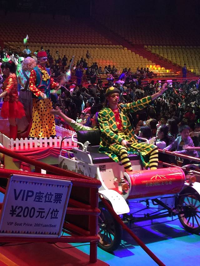 下午二宝又有些发烧,宝爸决定留下照顾二宝,安排宝妈带领奶奶和大宝去看大马戏。大马戏在动物园东边的度假村最里边,滴滴打车18.1元。这里太偏僻,国道速度快根本打不到出租的,后来退房离开也是叫滴滴的。大马戏门票在去哪儿网定的两大一小周末价1018,窗口平日300、周末380。儿童同价。晚上7点半开始,下午就到了太早换票时发现有一等座加100和vip加200对号入座,不用开场疯抢占座,位置也好看的清楚。宝妈果断决定来个一等的加300,前台小姑娘好意提醒我孩子抱着加200就行,我居然傻了吧唧的拒绝了,选过道孩子站着就行了嘛,反正她全程都是手舞足蹈的跳,很少坐在椅子上,真是笨哦。奶奶腰未痊愈也对我加价赞扬有佳,因为后来发现普通坐靠背很矮,真是一分钱一分货。不过不要去那个vip最前面区域,小丑和高台跳水会让你狠狠湿身的哦😂。