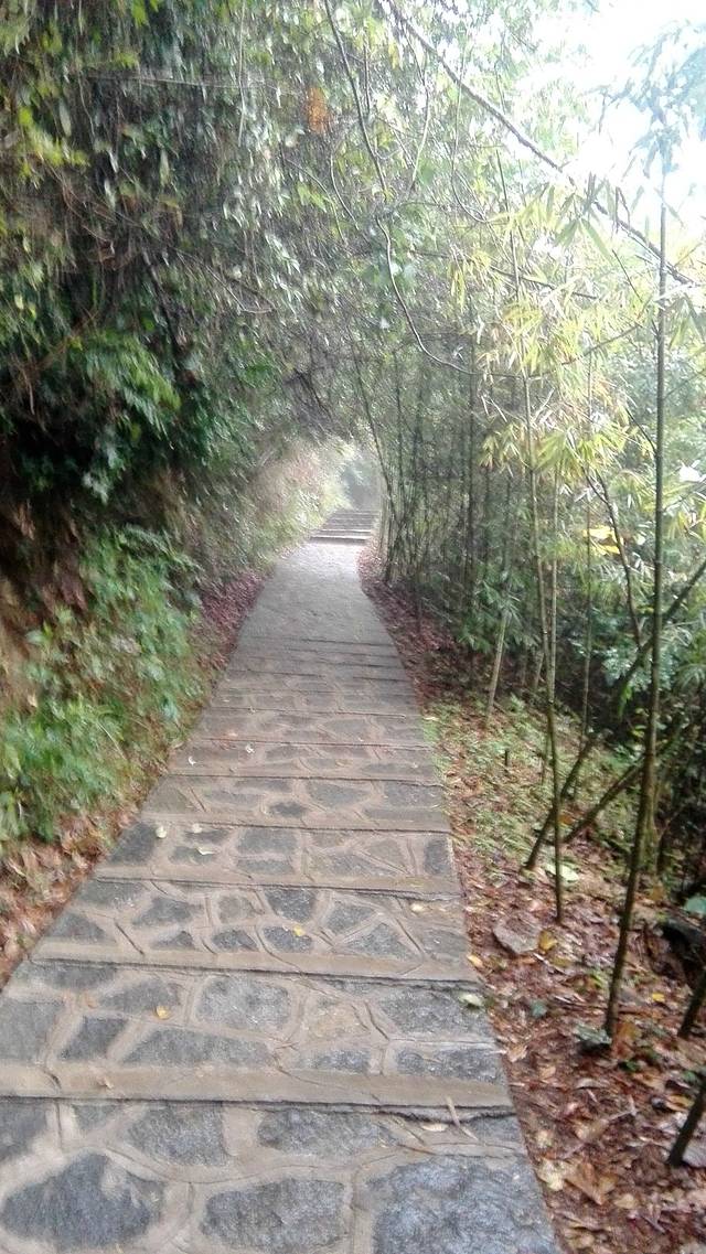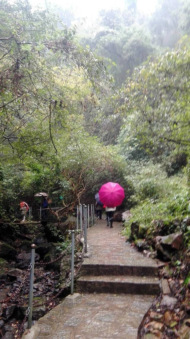 进入景区,顺着左边的小径,迤逦前行,一路环境很宜人。有清流溪涧,也有狂泻飞瀑;有凡花俗草,也有珍稀古树。而道路高低起伏,一忽儿竹林小径,一忽儿林荫小道,一忽儿藤蔓垂吊,一忽儿小桥流水。令人感觉分外舒畅,走在其中,只觉得心旷神怡,分外精神。