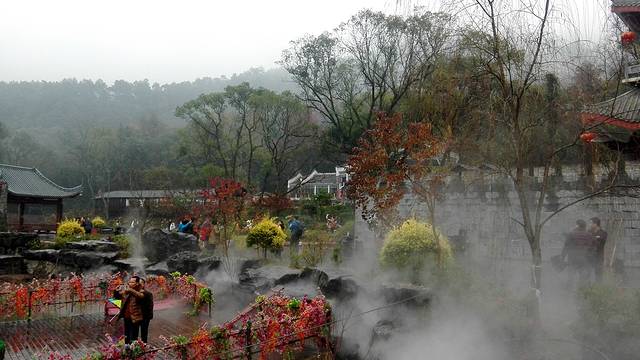 园区远离城镇,空气很好,我们去当天早上还下着小雨,所幸到了目的地以后雨就停了。园区门口有很大的停车场,还有饭店、小吃摊、商店。不过由于当天人很少,门口显得很冷清,小吃摊也只有一家。