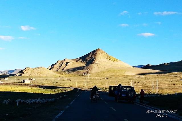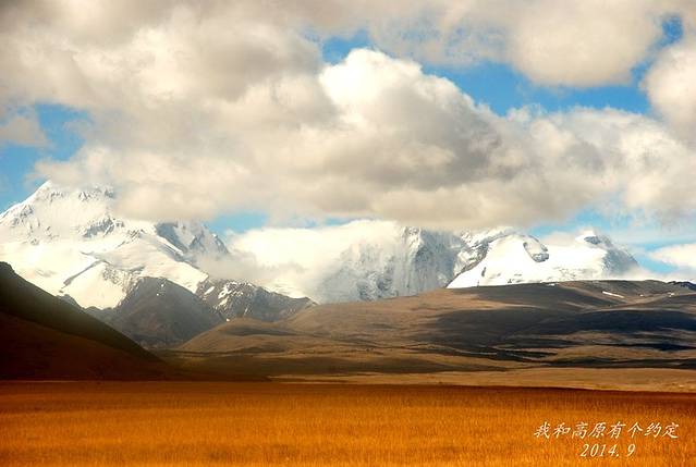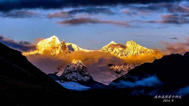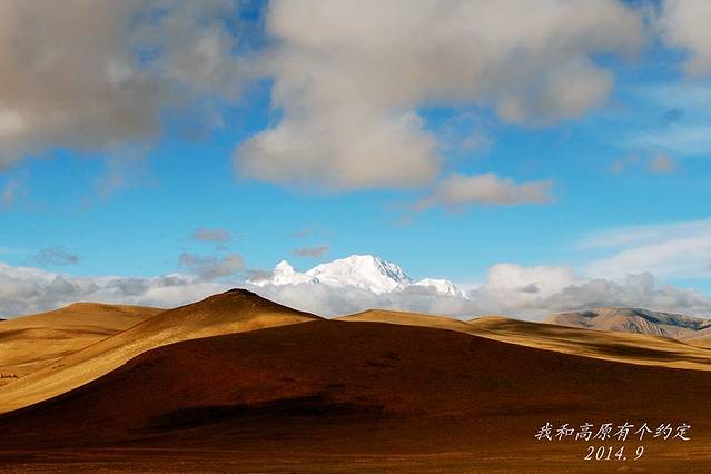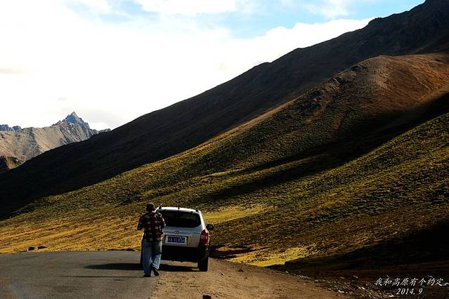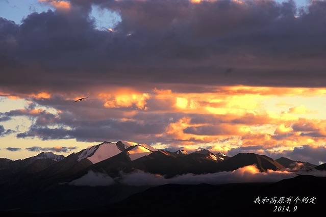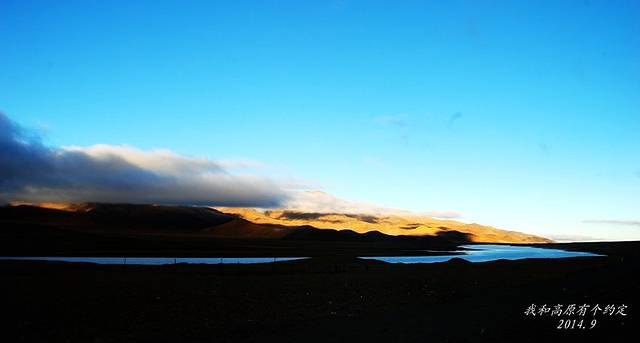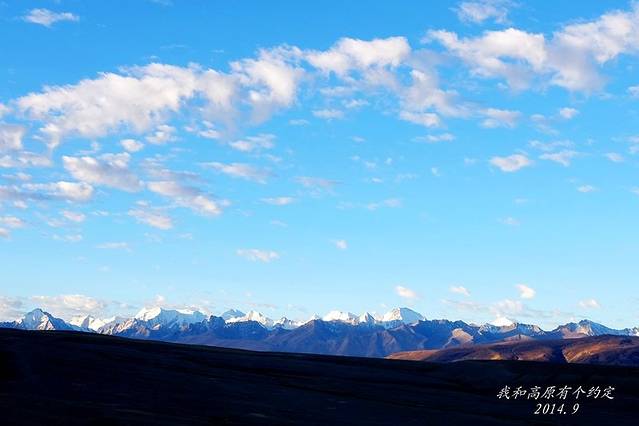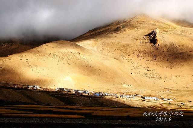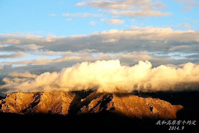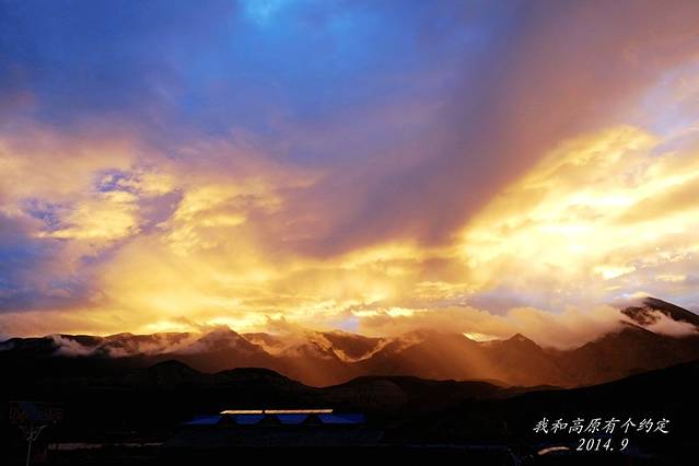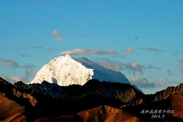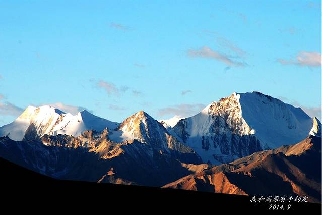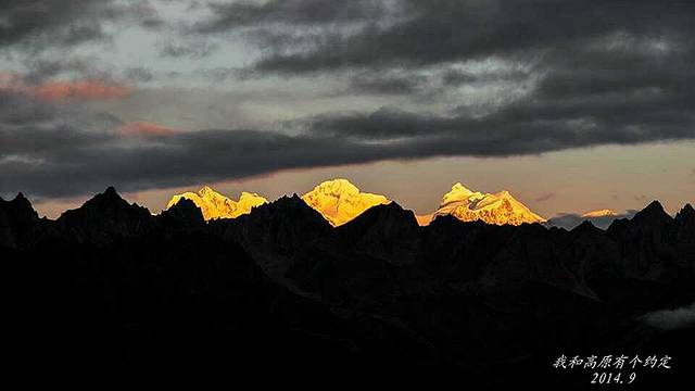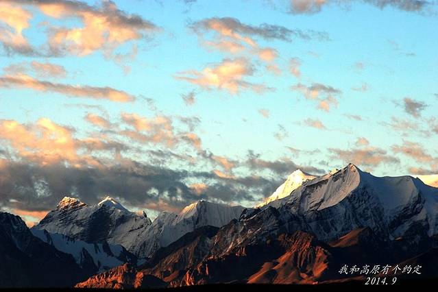 当太阳渐渐露头的时候,我们正好行驶到一个村庄附近,见两排房屋的豁口处有十几台“长枪短炮”架着,那是一帮摄友在等待拍摄雪山的“日照金山”。我们不是“专业选手”,旅行与拍摄更注重于行,至于能否拍到好的照片,可遇不可求吧,稍稍逗留继续向北。在拉萨认识的北京的车友“老探”先我们两天路过此地,拍了几张堪称精美的照片,在此“窃”来,大家欣赏。