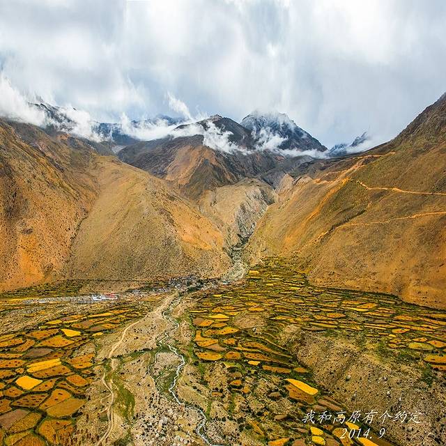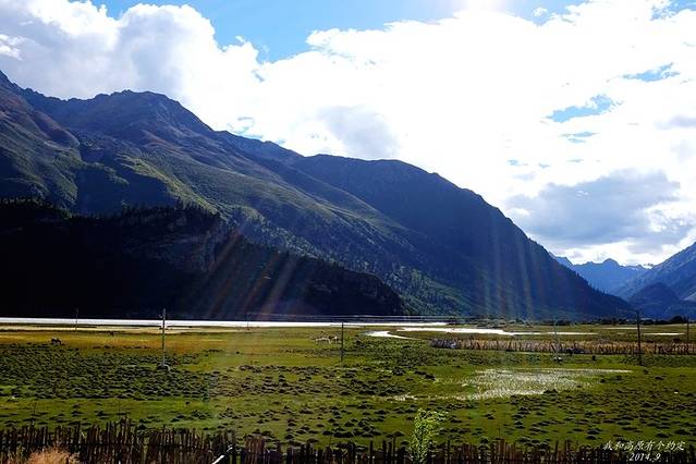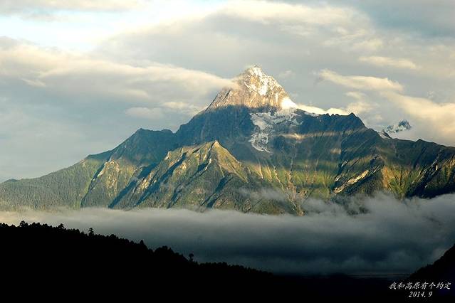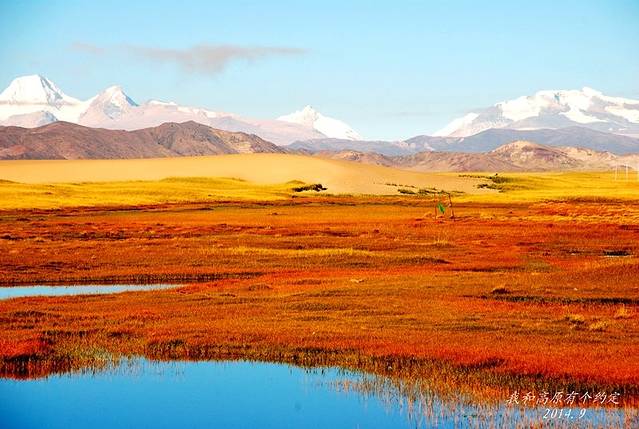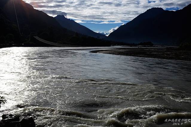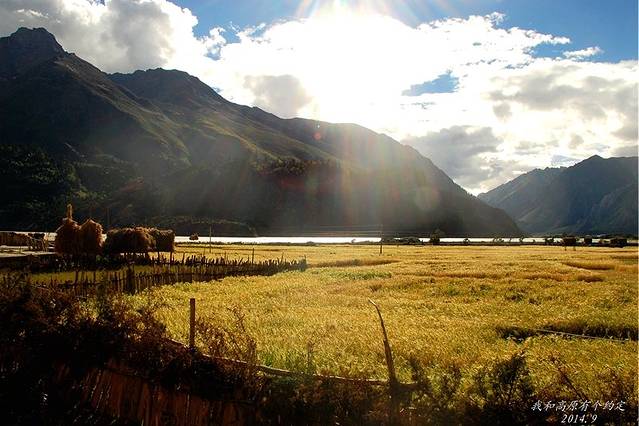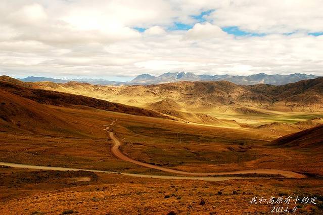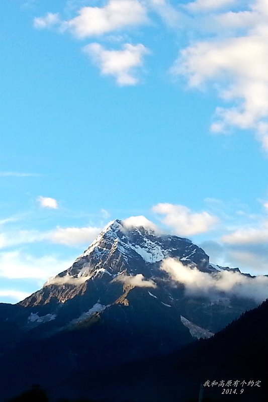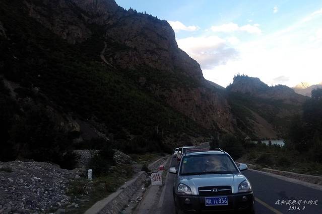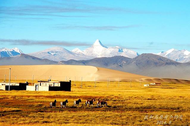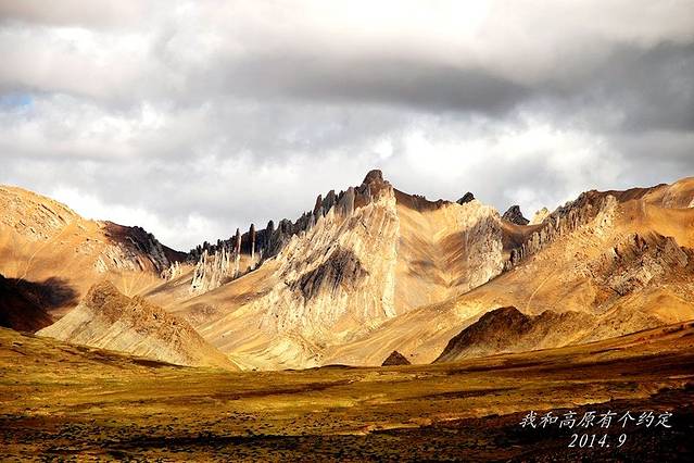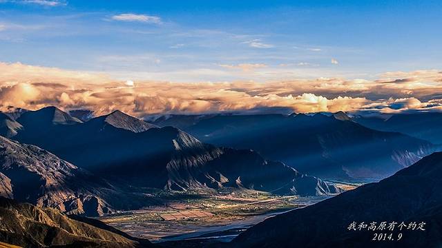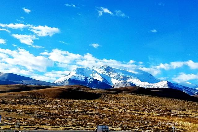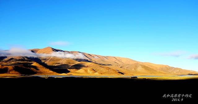 当太阳渐渐露头的时候,我们正好行驶到一个村庄附近,见两排房屋的豁口处有十几台“长枪短炮”架着,那是一帮摄友在等待拍摄雪山的“日照金山”。我们不是“专业选手”,旅行与拍摄更注重于行,至于能否拍到好的照片,可遇不可求吧,稍稍逗留继续向北。在拉萨认识的北京的车友“老探”先我们两天路过此地,拍了几张堪称精美的照片,在此“窃”来,大家欣赏。