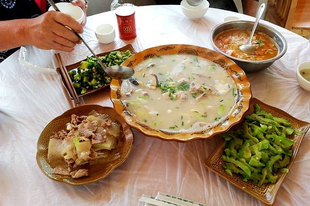 关岭是一座群山环绕中的县城,小巧干净,开车10来分钟就能转一圈。可能是离黄果树较近的原因吧,住宿并不便宜。找好客栈后自然少不了大吃大喝一番。