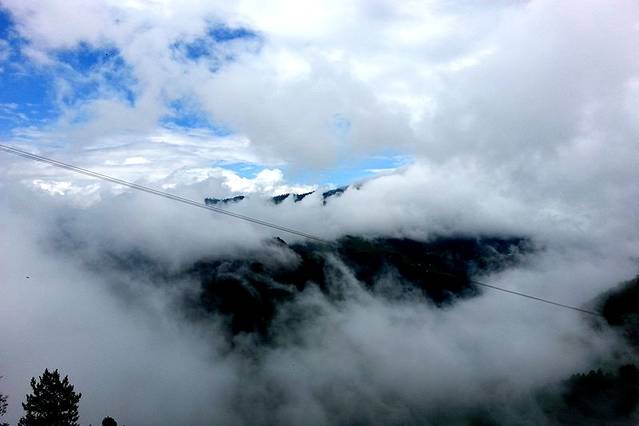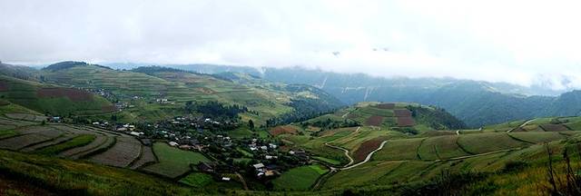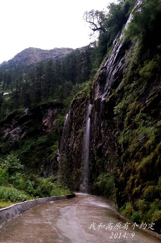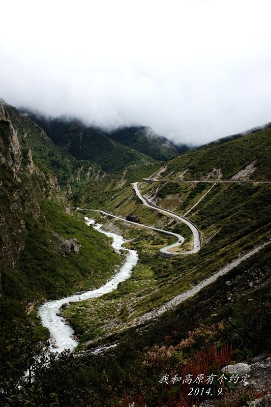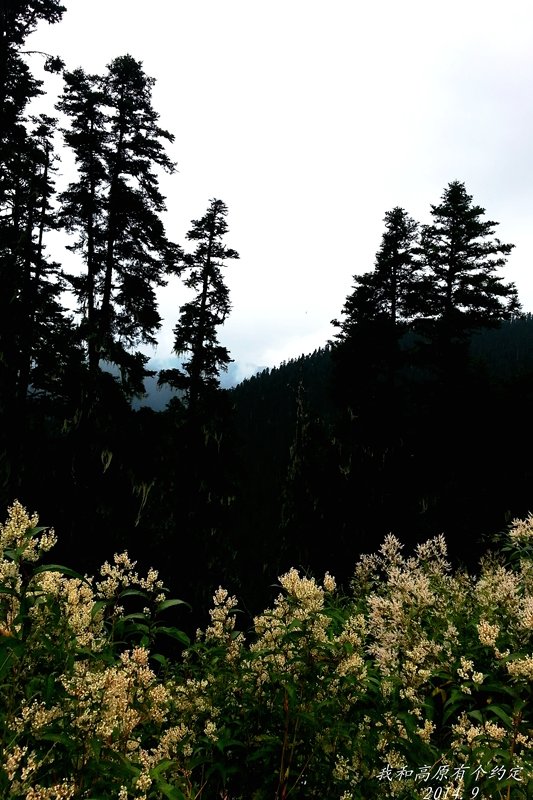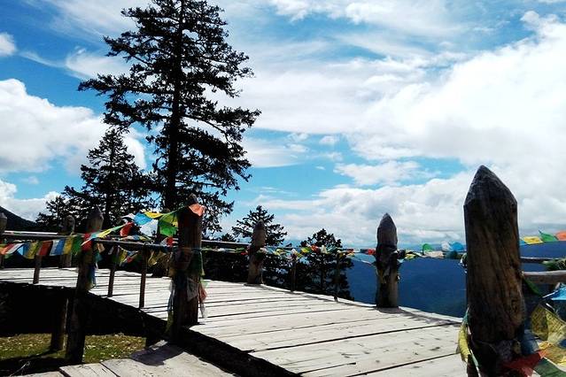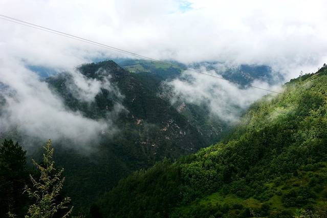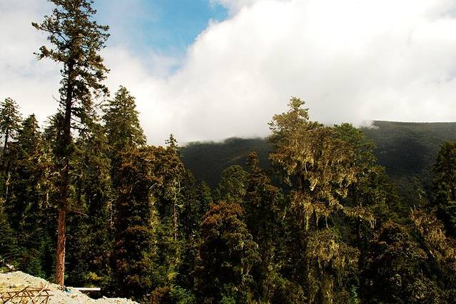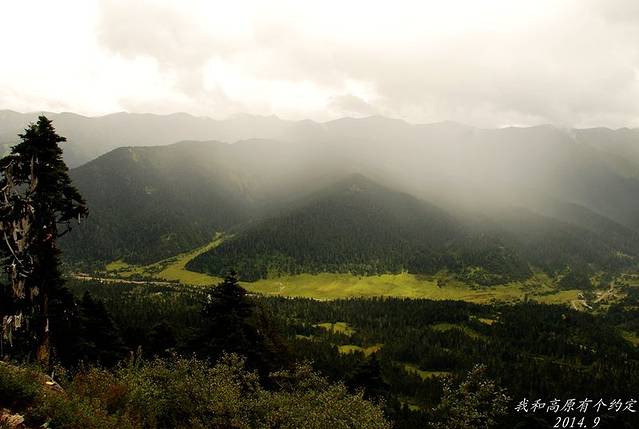 出虎跳峡便下起了好大的雨,艰难前行,公路盘旋海拔抬升,行至拉巴山顶,海报已是3000多米,与丽江的2400米相比抬升了近1000米,植被也由阔叶林变为针叶林,此时雨渐停,一阵冷风袭来,拨云雾见美景,高原风光初现。