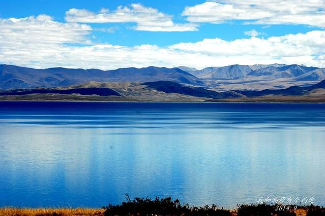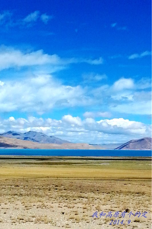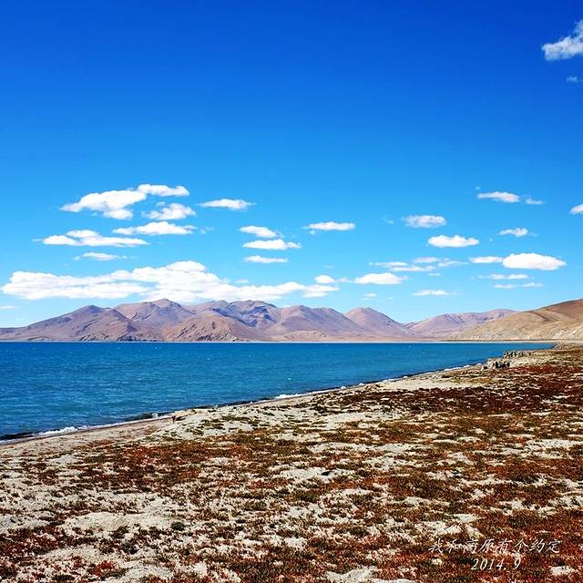 玛旁雍错上一片晴空万里,拉昂措上却是云层翻滚,尤其是朝纳木那尼峰的那一面,甚为壮观。拉昂措湖面海拔4572米,与圣湖玛旁雍措紧邻,风光同样美丽,湖水也同样蓝得心醉,可却被扣上“鬼湖”的恶名,被打入另册。其实“圣湖、鬼湖”原本为一湖,由于气候变化,湖泊退缩,水面下降,才由一条狭长的小山丘把它俩分开。