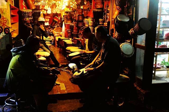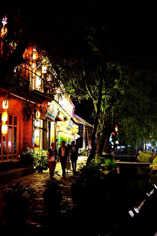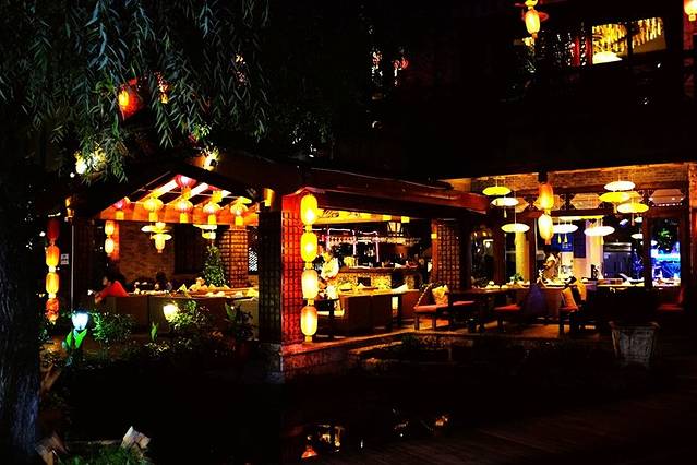 饭后春天美眉带我们去逛逛束河的酒吧一条街,看看夜景。晃荡在束河的小街,雨后的石板路凹坑中的水渍被沿街的灯光照射的星星点点,不同的街巷有着不同的特点,既有轰轰烈烈的酒吧热闹非凡,也有静静的咖啡屋或茶馆清静悠闲,形成了强烈的反差,这就是束河的夜生活,你又可以换个活法尽情地“嗨 嗨 嗨”。