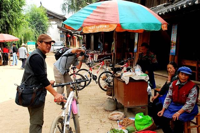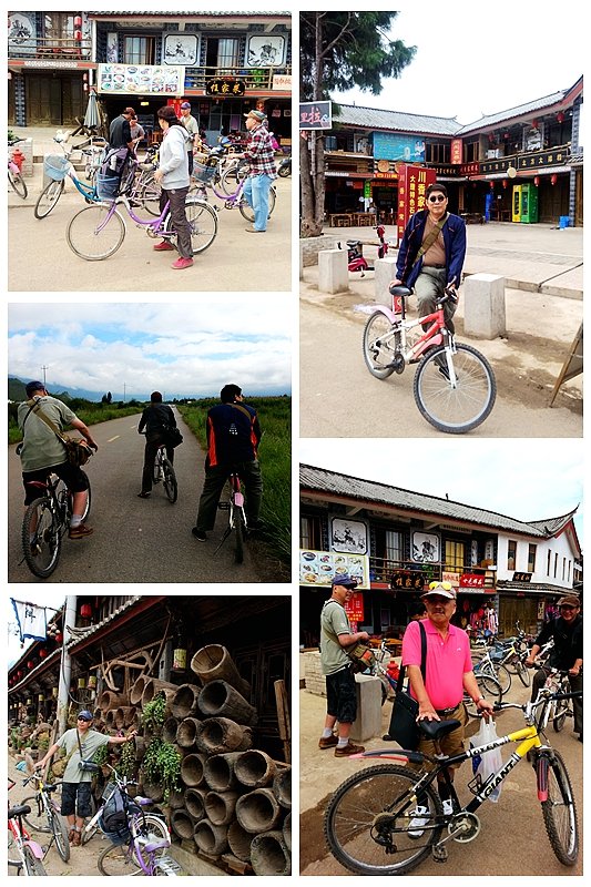 今天的休整是轻松的,不再准备开车,一人租辆自行车漫无目标地走走看看,这也符合环保出行的要求哈,自行车可是全天窗、全手动、零污染、零排放哦。六个人中只有爱俊没来过丽江,那就让他单飞,我们则去白沙看看。