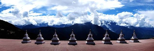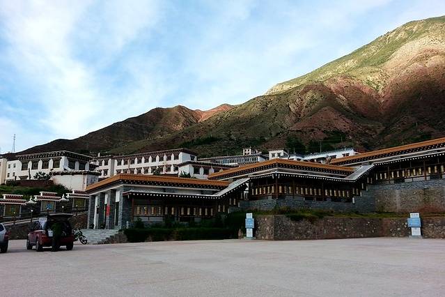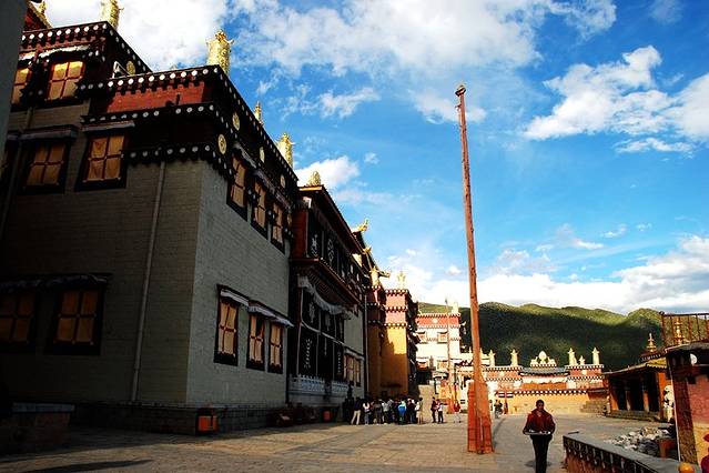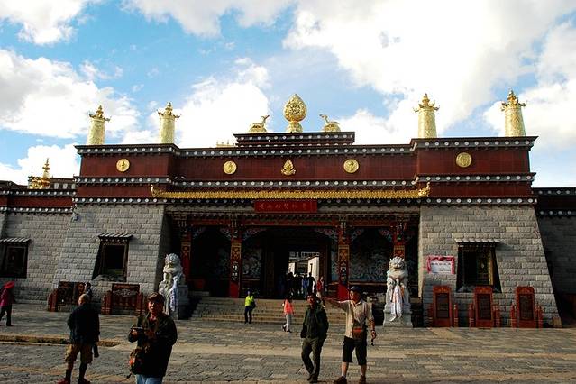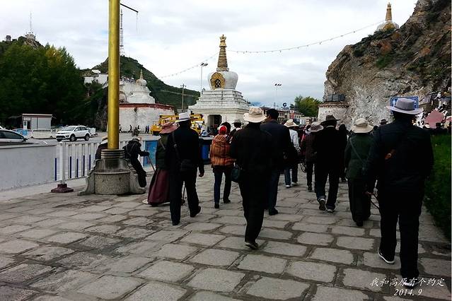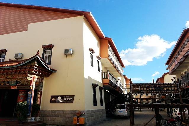 已经是下午快6点了,太阳却还在天上高高挂着,如同内地的3、4点钟,没卸行李直接去。松赞林寺现在现已变成了一个大景区,大门已经造到了几公里以外,有些气派,自备车只能到此,然后换景区的观光车前往。
