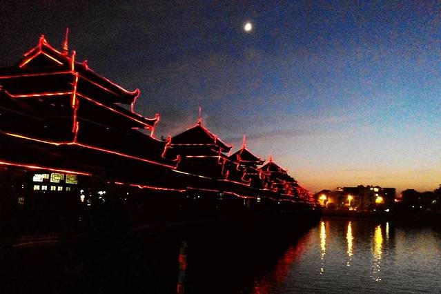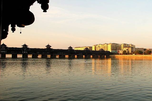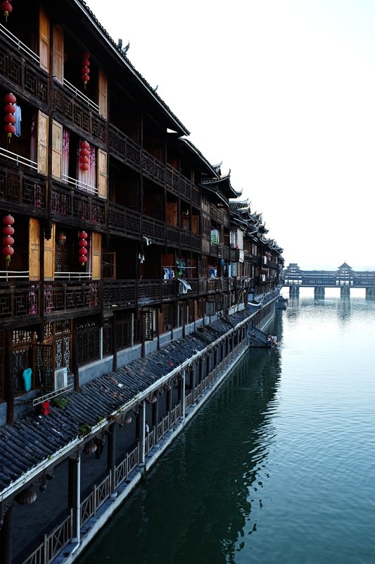 早晨推开吊脚楼的木窗,一股小风透着清新的味道吹来,沁人心脾。舞水河像一块明镜倒映着两岸的建筑,侗乡最长的风雨桥(龙津桥)、对岸内陆地区最大的妈祖庙在晨光中由模糊变的渐渐清晰,偶有晨练的泳者从窗前游过,鸭子般地划出阵阵涟漪,这一切都告诉我们,这座湘西小城苏醒了,人们即将开始新的一天的生活。