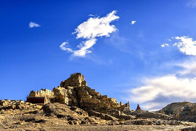 跨过马筱木拉山垭口,就算真正进入了阿里。如果说西藏是世界屋脊的话,阿里就是屋脊的屋脊,在这里群山已经不再高耸,可以平视,棉团似的白云同样不再高飘,几乎触手可及,一不留神你还会钻进一朵白云与之共舞,那种虚无飘渺的感觉如同仙境。