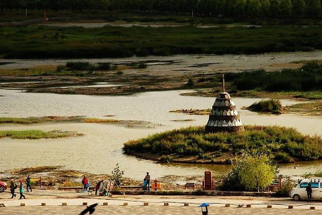 湖水退缩的很厉害,从我们停车的位置还要走几百米的沙滩才能到湖边。已经有了几台自驾的车在那,前面那台中巴车装了一车的东欧“老外”,有男有女,下车后兴冲冲地向湖边去了。LP说她有些累留下看车,我和老二艰难地向湖边走去,在这高海拔的地方,正常行走快了都气喘更何况是沙滩,加上太阳就在脑袋顶上直晒,走着都有些犯“晕”。