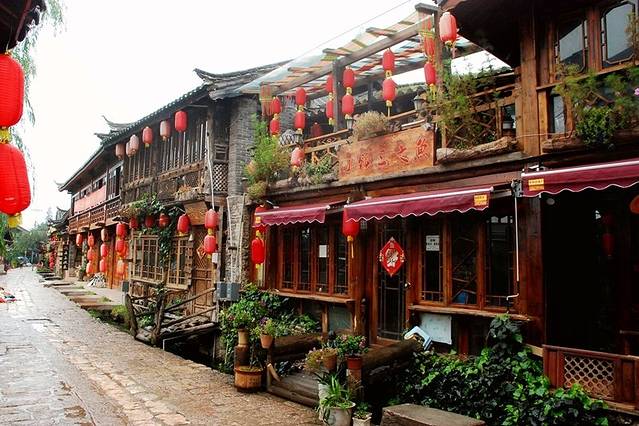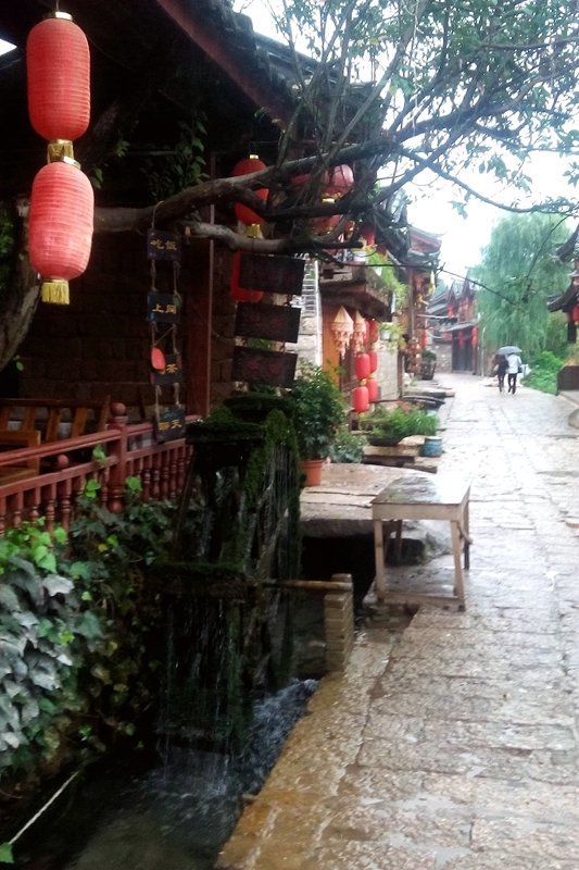 再一次走到四方街,领略雨中古镇的风情。踩踩脚下溜滑的青石板,看看身边新老不一的房屋,听听屋前潺潺的流水声……,多少有些惆怅。束河依旧,我将远行,就让束河的一切美好留在记忆和相册里吧。