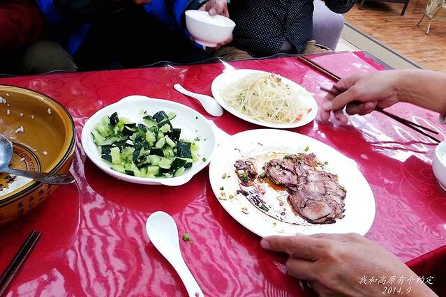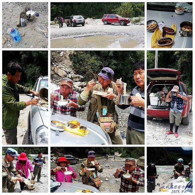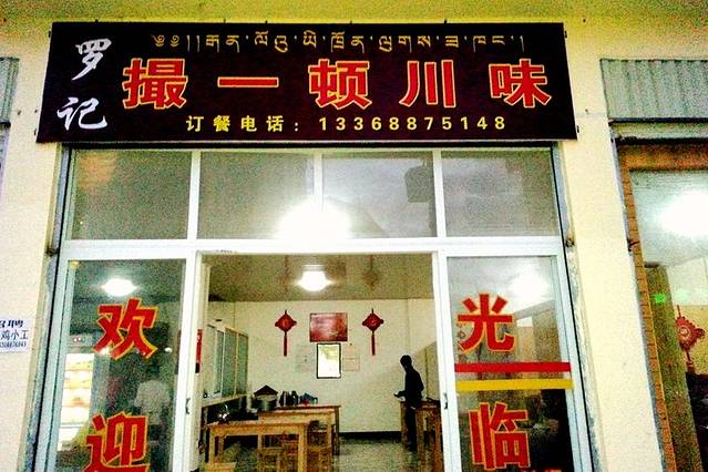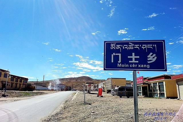 中午到门士乡。好几天午餐都靠干粮充饥,今天看看能否在门士乡寻些吃的,大家分头去找,开始只看见几家藏式奶茶店,老二掀开门帘屁股还没进去就退了出来,说是受不了那味道,也难怪,藏民大多吃牛羊肉屋子里味道肯定重,老二对羊肉有抵触自然受不了。好容易才找到一家可能也是唯一的一家小餐馆,也没啥吃的,就罐头煮面,不管怎地好歹比干粮好吃,每人吃一碗走人。