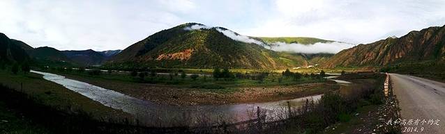 天才蒙蒙亮,G219国道无车无人一片寂静,阳光从背后的山顶照射到远处的山峰,山峰之下是一层雾状的平流云,阳光没照射到中间的阴影部分却是一片漆黑,再加上两侧严重沙化的土地,让你感觉像是置身于另一个星球,只有淡蓝色的马泉河可以证明你还在地球。也难怪,这片土地已经是离别的星球最近的地方了。