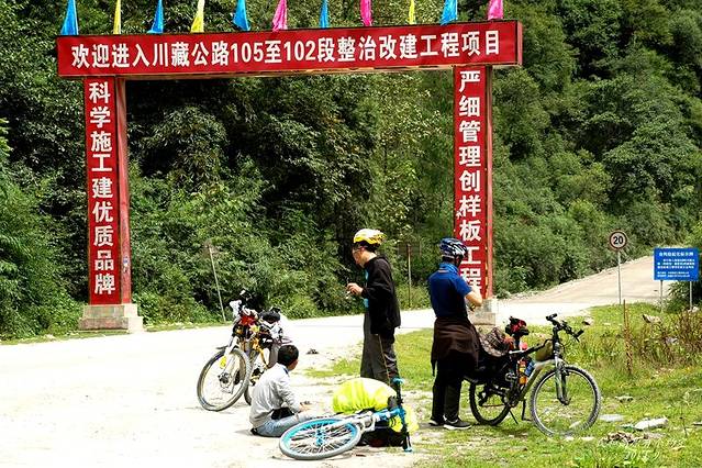 如今还没走进西藏轮胎就出了问题,当地一时半会儿也买不到轮胎,这不能不让人感到揪心,只好硬着头皮走,小心小心再小心,后面的路程连一个很小的石子都不敢轻易压过,烂路更是低速行驶,多了一分牵挂。可就是这样在后来的旅程中还是破了两次轮胎,而且情景一次比一次“悲催”。所以在此奉告各位要自驾远行的亲们,出行前一定要换上好轮胎哦。