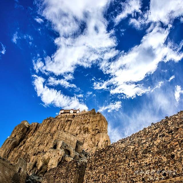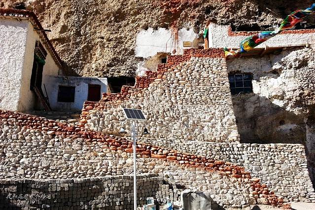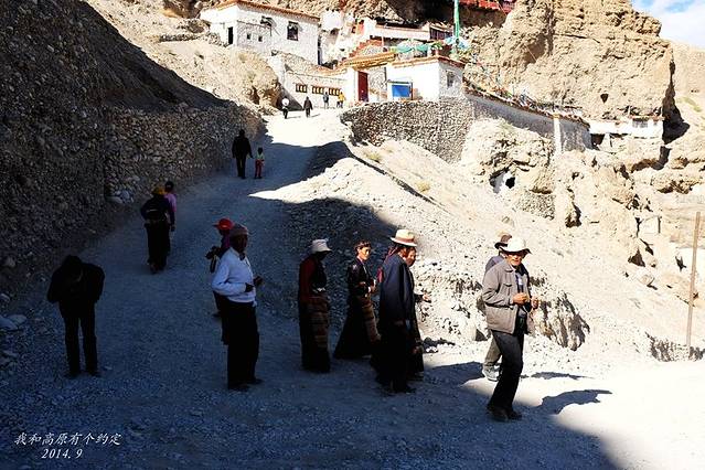 抬头往山上望去,见一座寺庙挂在半山,这就是在西藏地区都比较少有的悬空寺庙古宫贡巴了(在普兰好几座寺庙都被称为“贡巴”),车子可以沿很陡的土路一直开到门口,今天有一个藏族大家庭来这做佛事活动,挺热闹的。