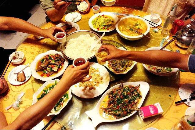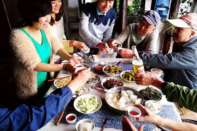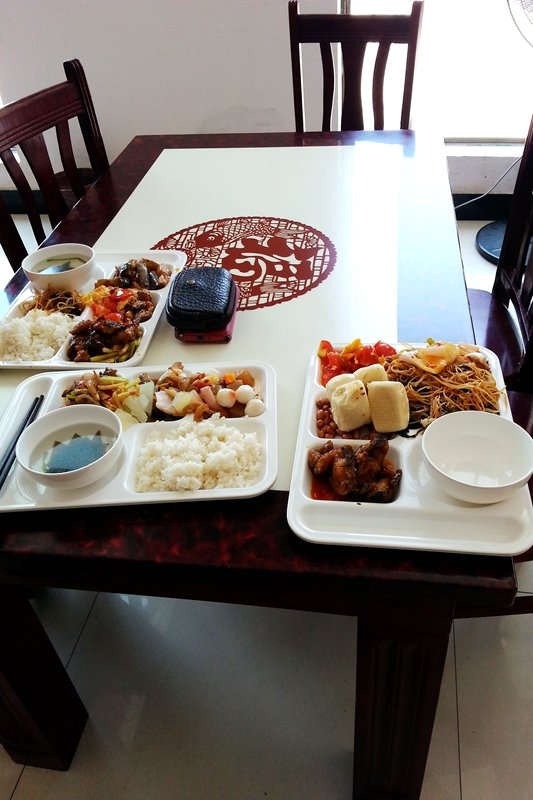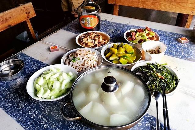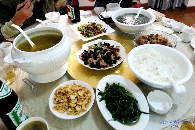 客栈附近有一个小小的美食广场,江西的菜分量很足,谈不上好吃,一干人边吃边聊第一天的感受,觉得并不累。