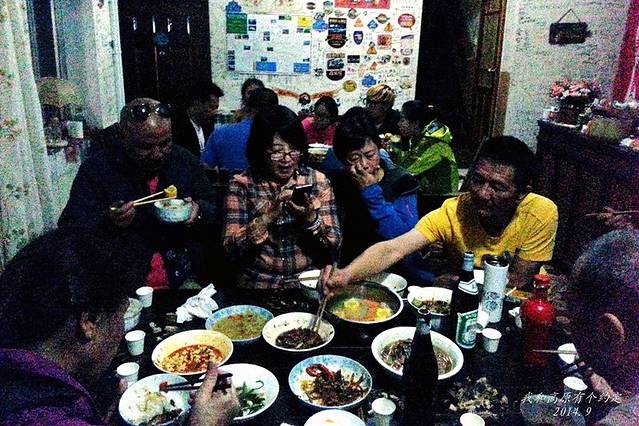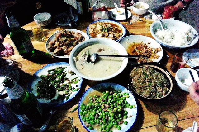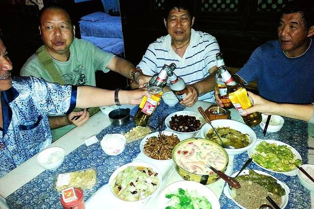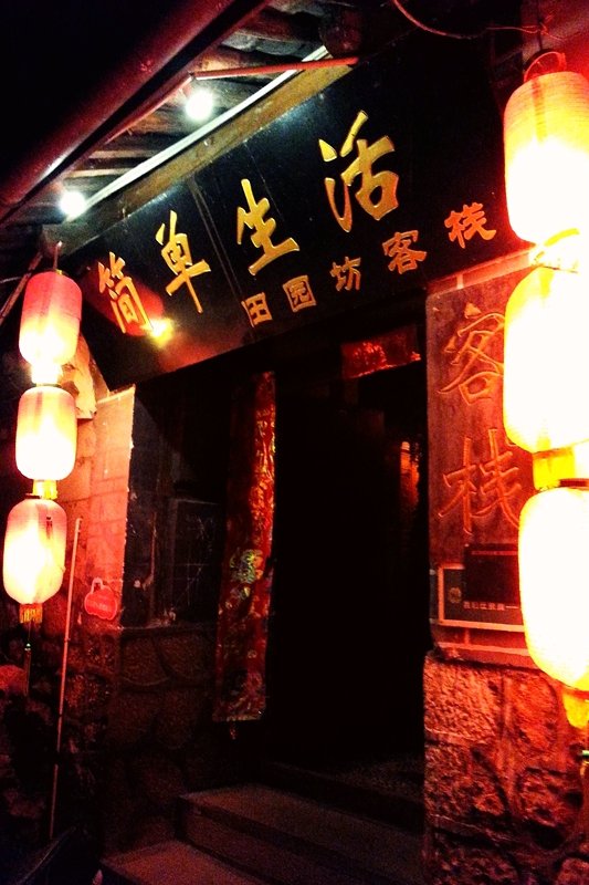 车过拉市海,渐渐可以看见天边的灯火通明,那是丽江。旅游已将丽江从几十年前一个默默的小镇变成一座大城市,俨然失去了宁静的气氛,不知是好事还是……。没去丽江直接到束河,小张已经在镇口的停车埸等着了,大家拖上行李踩着石板路到达她的简单生活客栈。一会儿热腾腾的饭菜上桌,我们举瓶庆祝顺利完成了第一阶段的行程,明天我们将在束河修整一天。