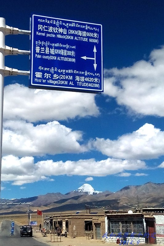 快到省道S207的霍尔乡有一个加油站,这里已经可以看到藏族人民心中的神山冈仁波齐,在晴朗的天气下头盔状的冈仁波齐清晰可见,大伙一阵激动,对着神山不停地拍,不肯前行。一看这样我赶快告诉大伙去普兰的路上冈仁波齐将会一直陪伴着我们,还是赶路走走停停看看,不要在一地多耽误时间,大伙才依依不舍地收起相机出发。(有关冈仁波齐的叙述留待下一章)