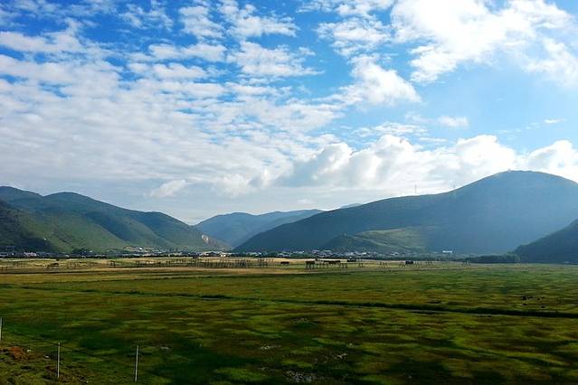 前一天写过10年前我曾到过香格里拉旅游,但最远只到过县城,由此往西北方向的214线就没有走过了,是一条完全陌生的道路。一出香格里拉县城不久,立马就被眼前的景色惊着了,蓝天白云之下一片广袤的草原像一幅画展现在眼前,这就是纳帕海依拉草原。