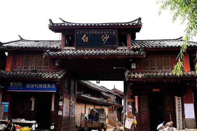 白沙古镇是“丽江古城”的组成部分之一,位于玉龙雪山下,是丽江第一大家族,即丽江土司“木氏家族”的发源地。与大研、束河相比要小很多,但却有着更加原始古朴的民风。只是这种民风估计不会保存太久了,因为它正在做着整体开发,若干年后会不会变得像丽江一样繁华而失去它的乡土味?我有点杞人忧天。