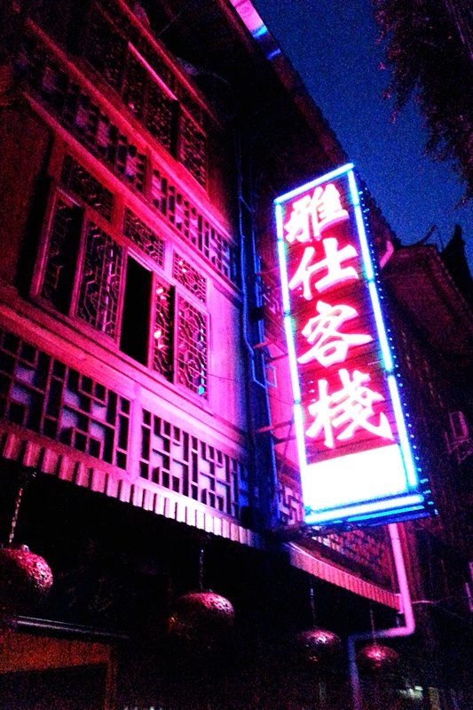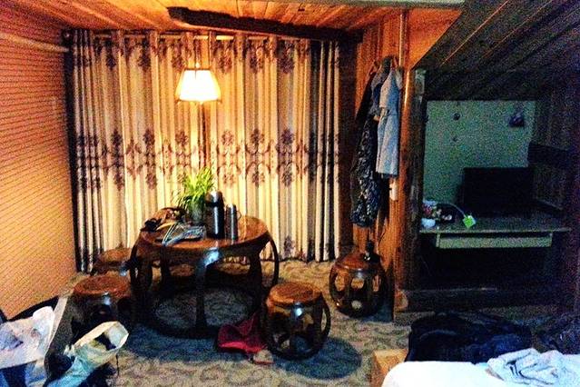 到了芷江才发现今天是周末,在沅江边找了几家宾馆不是客满就是没地儿停车,怀化一位网友推荐说你们去住吊脚楼吧。吊脚楼式的客栈从芷江三桥到风雨桥有好几家,环境也不错,可也是有个没地儿停车的问题。终于找到一家雅仕客栈,老板娘说认识附近一个单位,可以将车停在那里,住下。