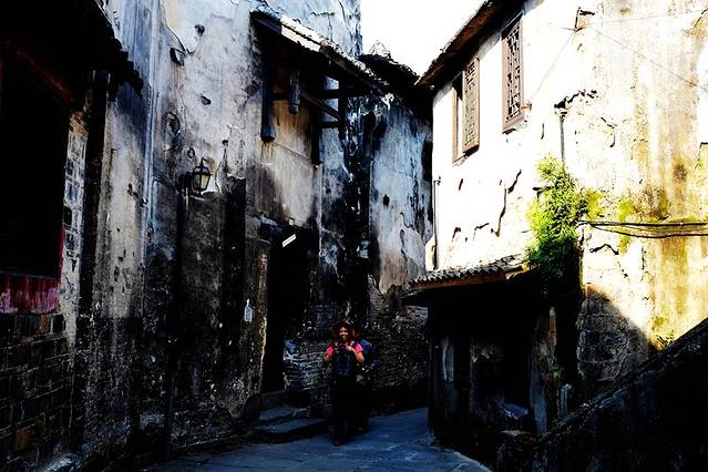 古商城里的建筑多为极具地方特色的窨子屋,院墙极高(这是好多江南古镇不具有的),曲曲弯弯的巷弄在高墙间显得更加深邃,岁月已将青瓦粉墙磨蚀成一片银灰,透过那斑驳的水渍仿佛能看见当年的辉煌。