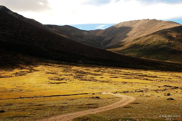 进入省道S207后左侧是一道看着不太高的山梁,山梁的背面应该还是玛旁雍措,我们想看看能否从高处看到玛旁雍措,就找了条有车辙土路冲上山梁,谁知上了山梁后并不能看到玛旁雍措的全貌,而是无尽的山梁,只见天边一抹蓝就是走不到,一直向东走了六、七公里都是这样,只好调头折返,悻悻而回,看来这是个错误的举动。之后又见到许多条估计可以通往湖边的道路也就没有兴趣再走了。