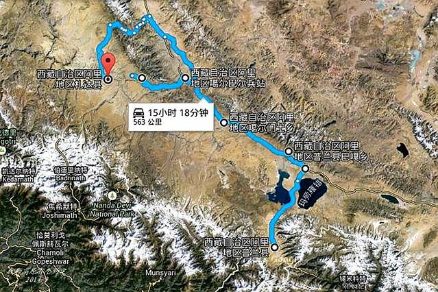 去札达距门士乡50多公里的巴尔兵站是一个重要的地标,这里有条路可以走120公里直接去札达,好像是专为去土林地质公园修的,有些年头但路面不错。按正常的导航或地图前往札达应该是再往北走80多公里到一个叫那不如的村附近才向南,但据说那条路很远且糟基本没有车走,可不知为何这条不错的柏油路却没有在谷歌地图上标注出来。各位想要自驾去札达的亲们,请记住要在此变道哦。