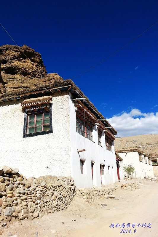 仲巴有新老之说,两地相距约30多公里,在藏语里意为“野牛之地”。老仲巴很小是原来的县城,仲巴的检查站设在这里,两排藏居沿公路而建,看上去也就一个村庄而已,但白墙红门的民居在强烈的阳光照耀下,透露着浓郁的民族气息。