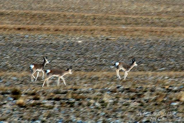 越往北地势越高,喜马拉雅山脊的雪山也越来越清晰,高低错落绵延不断,我们不顾高原的寒冷,下车欣赏,群山在淡淡的白云下散发出耀眼迷人的白光,壮观啊!那种变幻莫测的色彩是很难用相机记录下来的,只有身临其境才有体会,直到一群野生动物的出现才提醒我们应该继续前行。