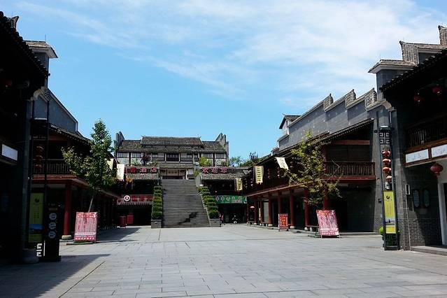 很快就找到了古商城景区的大门,可能是因为不是主要的旅游景点吧,游客不多,但门票价格不菲,之前也在网络上看到一些逃票攻略,但想想难得来一回还是购票进入,凭门票晚上还可以在古镇里看一场类似“印象大红袍”的演出。