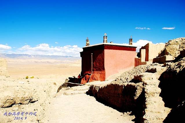 古格王国遗址在县城的西北面,距札达约20公里,和我们来的路不是一个方向,如果你只看札达土林那是不用门票的,因为土林方圆几百平方公里,完全是一个开放的世界。而古格王国遗址不一样,它环绕在高耸苍凉的土林间,只有一条道路进出。半路上有一根横杆拦住,这就算是景区的大门了,门票是个套票,包含了札达县的所有景点,价格虽贵还是值得的。