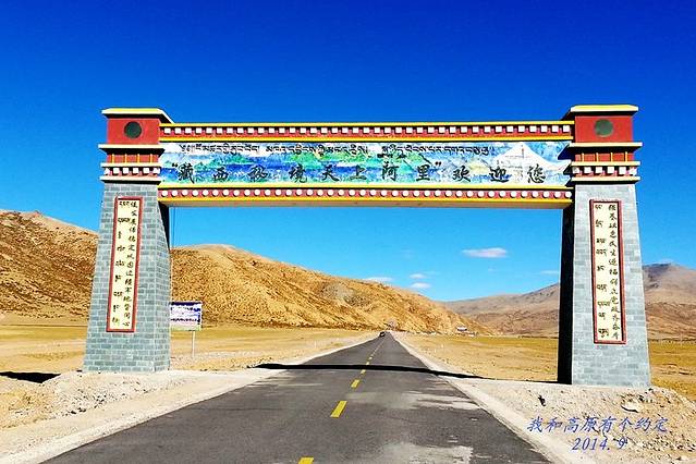 过帕羊开始上山,半山途中一块巨大的藏式门匾横在路中,上面写着“藏西密境天上阿里欢迎您”, 再向前就是马筱木拉垭口,海拔5211米,那是日喀则与阿里的分水岭,人们俗称:西藏往西的分界线。