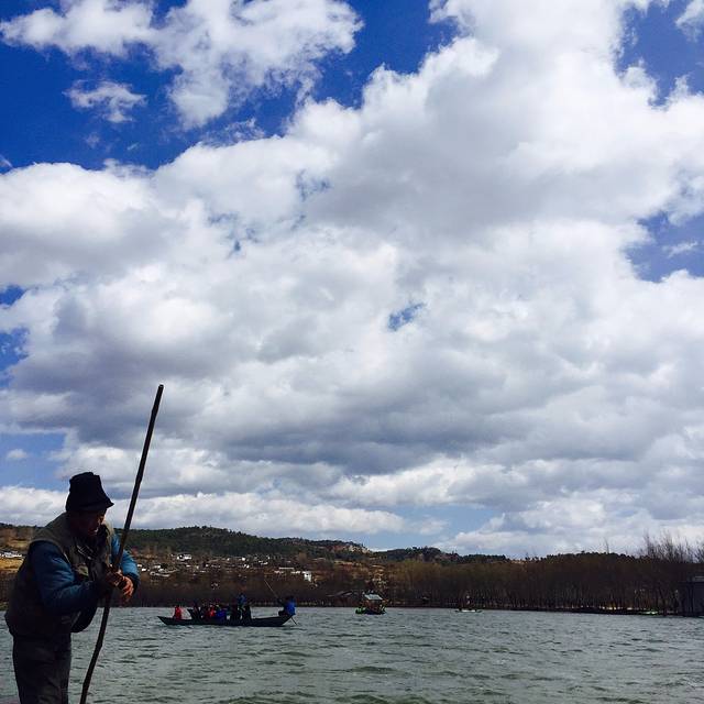 第二天,起床后吃过早餐,被门口一个阿姨拉住,问我们要不要去拉市海骑马、划船。本来就是闲散来玩的我们对于今天的行程没有安排,于是就跟着阿姨去了,一个人20元包来回。后来才发现上当了,拉市海在茶马古道旁边,那一块儿地区是丽江宰客最厉害的地方,骑马价格高的离谱,而且这些小车把你拉过去大有种你不玩个什么就不让你走得架势。我选择了划船,据说划到一半会有好吃的烤鱼,鱼是拉市海里现钓的,所以还是屈服了。