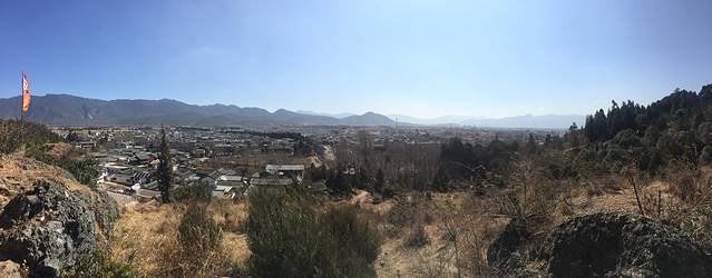 起床在古镇中闲晃,沿着一条路直走会达到束河古镇的一座小山坡,站在山坡上能俯瞰整个束河古镇的全貌,那一刻才知道束河古镇其实还是蛮大的。