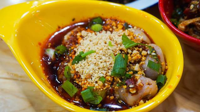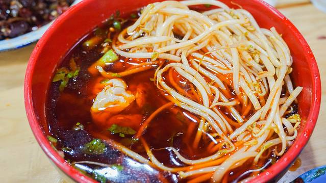 血旺,非常非常的嫩啊!看起来其貌不扬但是太嫩了,筷子一夹就碎,必须要用勺子。外面的红油辣椒非常的香,这碗获得了一直的好评。