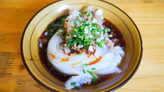 乐山的豆腐脑和宜宾的豆腐脑不一样,像是浆糊里面放豆腐脑块一样,个人不喜欢这种。 但作为地方特色还是一定要试一下的。
