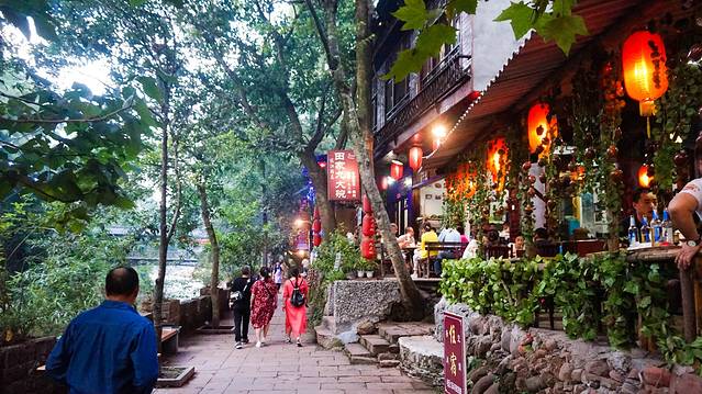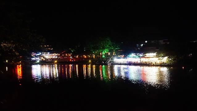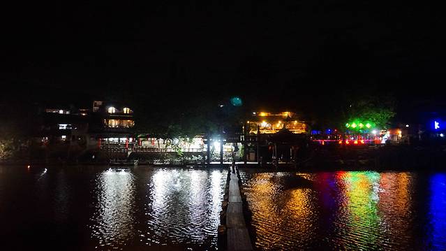 入夜了,江边开始了夜啤酒和响起了KTV的歌声。但是游客们的歌声大多都很烂。配合着古镇悠闲的气氛还当一个调味剂。