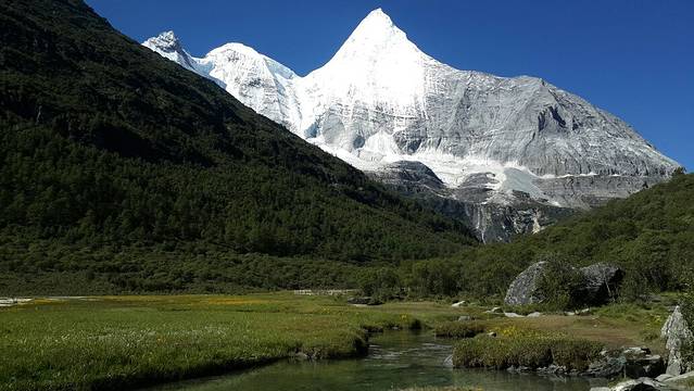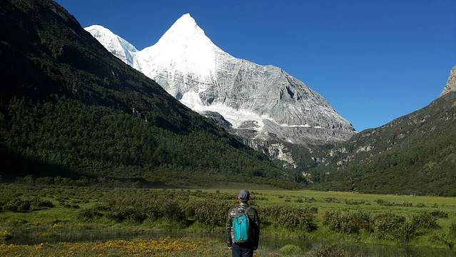 Day4:稻城县城到亚丁景区。那时正是旺季,听说每天限流量5000人,我们早早在网上订好了,但想早点去免得人多,所以太还没亮就出发了。到那里人已经很多了,还出现了售票处临时停电的小插曲,还好没多大影响。一路坐景区车一两个小时到达景区,天气好景色美,远远的就能看到雪山,好美!!我们在景区住的,下午看了仙乃日爬了珍珠海,下午四点多就回去休息了,傍晚看到了日照金山!上图啦!!