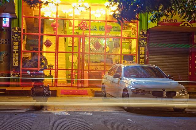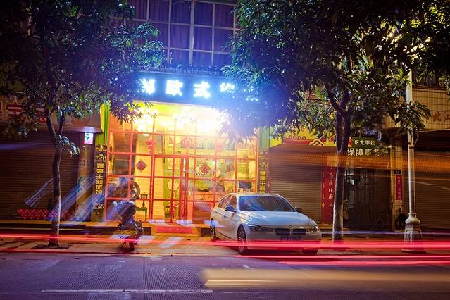 吃饱之后开车也愉悦很多,一口气开到韶关打算作为今晚的落脚地了。下高速放下车窗缴费的时候,工作人员披着大棉袄看到我还穿着短袖居然笑出声来,哈哈温差太大了。 手机APP找了家7天连锁赶去,结果一问没房了,继续下一家,突然在路上看到一家门面超萌的小旅社,妹妹跟我觉得这家很赞所以停车去问价格和空房情况了。这家nana主题旅馆墙上画满了卡通图案,各种小装饰也十分Q萌,很有鼓浪屿那种风格,一问还有房,价格也合适,果断办理入住手续。 安顿好落脚地,我打算出门去拍两张夜景,可整料过了10点城里的景观灯也熄灭了,也罢赶紧回去睡觉吧。今天的行程真的是只有方向没有目标,一切决定都是如此随性,不得不接受堵车的苦闷也不免收获了很多意外的惊喜。