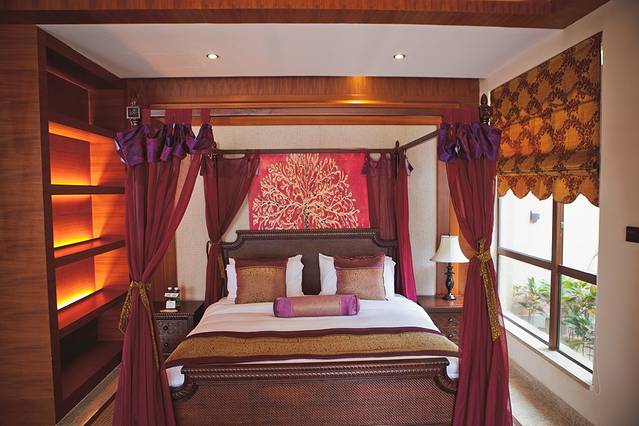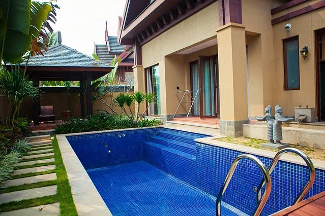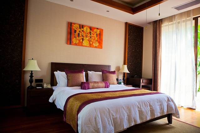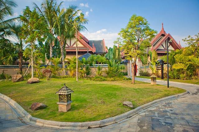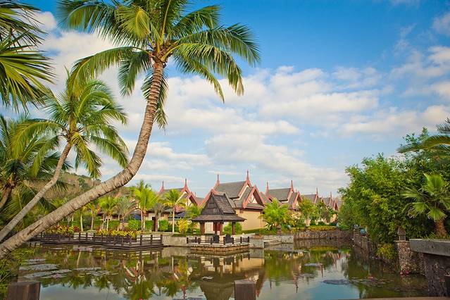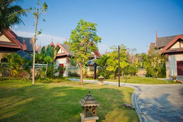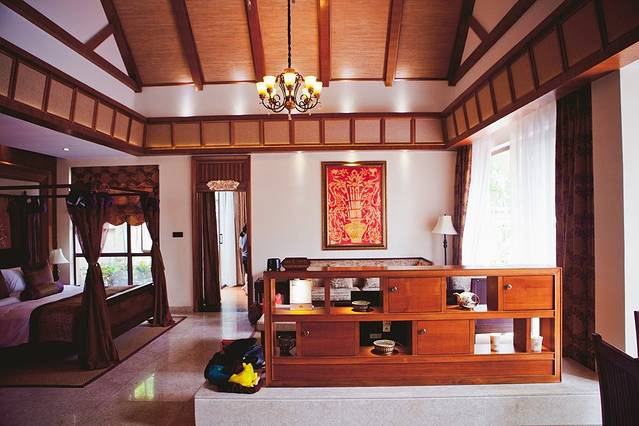 兴隆预定了中奥戴斯温泉酒店,位于石梅湾,别听有个“湾”字以为就是海景酒店,其实只是个山地别墅。也正因为如此价格也显得比较平民,春节期间海南的海景房都是高不可攀,哪怕在偏远的石梅湾。不过我们这个酒店也算可以,泰式风格,两卧别墅加私家泳池,已经是我们此行的腐败至高点了,既然订了这么好的酒店,那必须多花点时间去那边放松下了。
