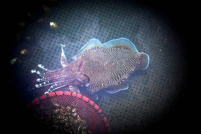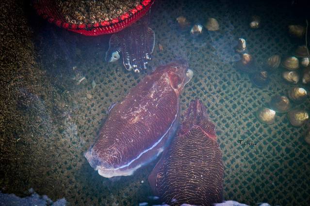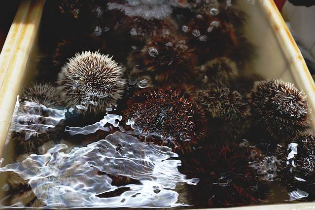 活的海胆,密密麻麻的刺球引起了小家伙的高度关注,说实话我们也见得不多。