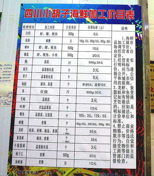 买完海鲜进店加工,三亚的物价明显比文昌会高一点,谁让人家三亚是国际旅游城市呢,当然明码标价心里也踏实。