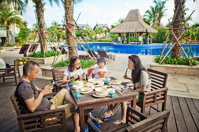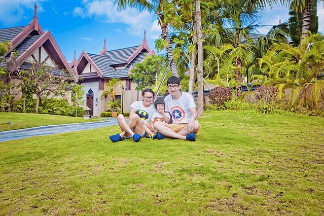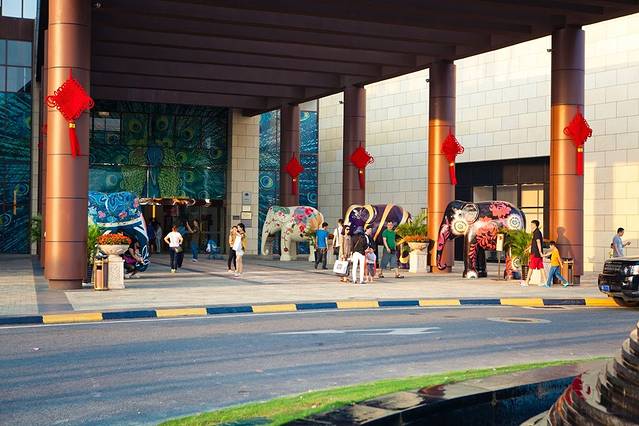 离开三亚高速前往兴隆,在兴隆高速出口看到个奥特莱斯,遂决定等会来逛逛。酒店真的挺大的,除了一栋主楼有6、7层之外,其余通通是别墅,而且好玩的是这些别墅都是可以买卖的。办理好入住,有酒店环保车送往别墅,进门气派的大厅瞬间征服了我们这群土鳖,真的好大好大,不停的哇不停的拍照,二货青年一发不可自拔了。感慨归感慨,回归理性准备去之前看到的奥特莱斯逛逛,出门前让前台把泳池的水放起来。