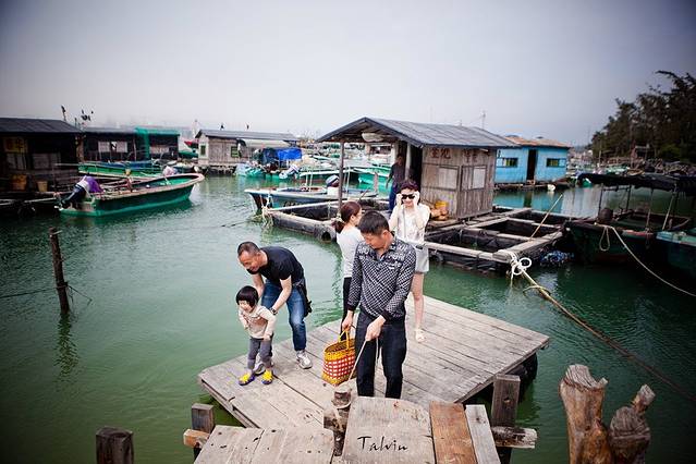 前面那个是店家,他手里拎的就是我们的午餐,后面那个小小的水上屋就是他家的,海鲜就暂养在哪里。