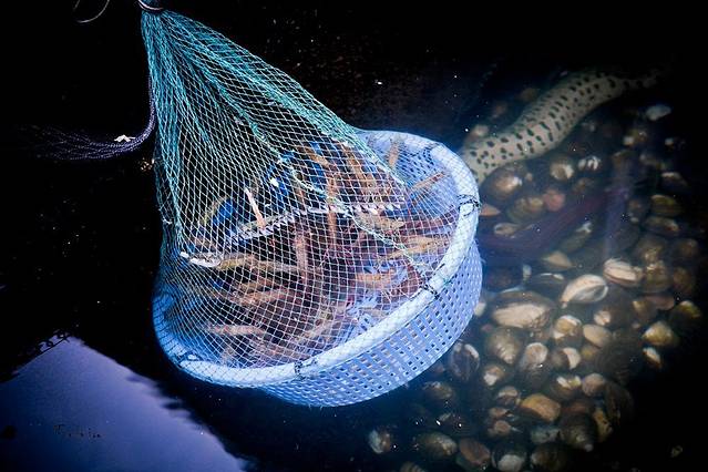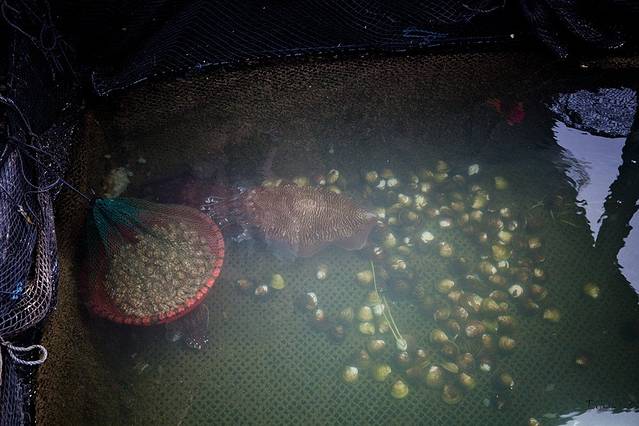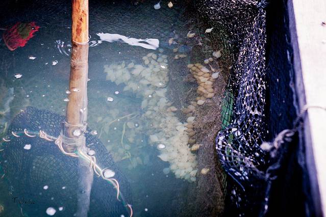 玩的差不多了,拖回Co姐准备去吃饭了。度假村门口刚出就有很多拉客的当地人,选择了一个决定先去看看情况。其实说实话因为之前的海南的宰客新闻也看了非常多所以在海南我们还是比较谨慎的。被带到一家不远的金龙海鲜舫,老板很热情的招待我们,我们则谨慎的询问着价格。这里的海鲜都是活的,在离店铺不远的海里面养着,跟着老板还是伙计前往,还要坐一小段浮板才能到达海里的养殖场。养殖场里的海鲜种类不多,店家介绍因为春节的关系很多渔民也不出海了。我们仔细的询问每种的价格最后挑了几只螃蟹和一种贝类。
