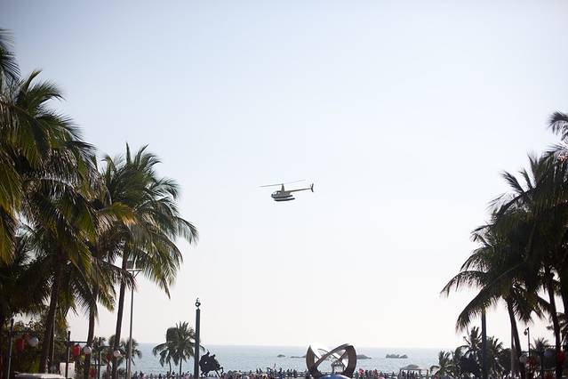 一到三亚湾,一个醒目的指示牌给我们印象深刻,喜来登、万豪、美高梅、希尔顿通通一应俱全,说的直白点这里就是个富人区,街头随处可见拉风的跑车、豪车,物质的气息弥漫着这片海岸。由于三亚湾密密麻麻的遍布着各家酒店,而各个酒店也非常默契的将门口的海滩划分成私家专属,进入海滩的资格就是酒店房客。可怜的我们几次被保安大叔驱赶出来,再打算放弃之时我们好不容易从一条小路进入了海滩。最美海岸线果然名不虚传,无论沙质还是水质在此行中都属于上乘,不禁感慨享受好的风景在国内需要付出的代价真的不菲。海滩上也有很多娱乐项目,但是获知收费后妥妥选择放弃,还是用眼睛多欣赏下这片美景吧。