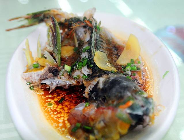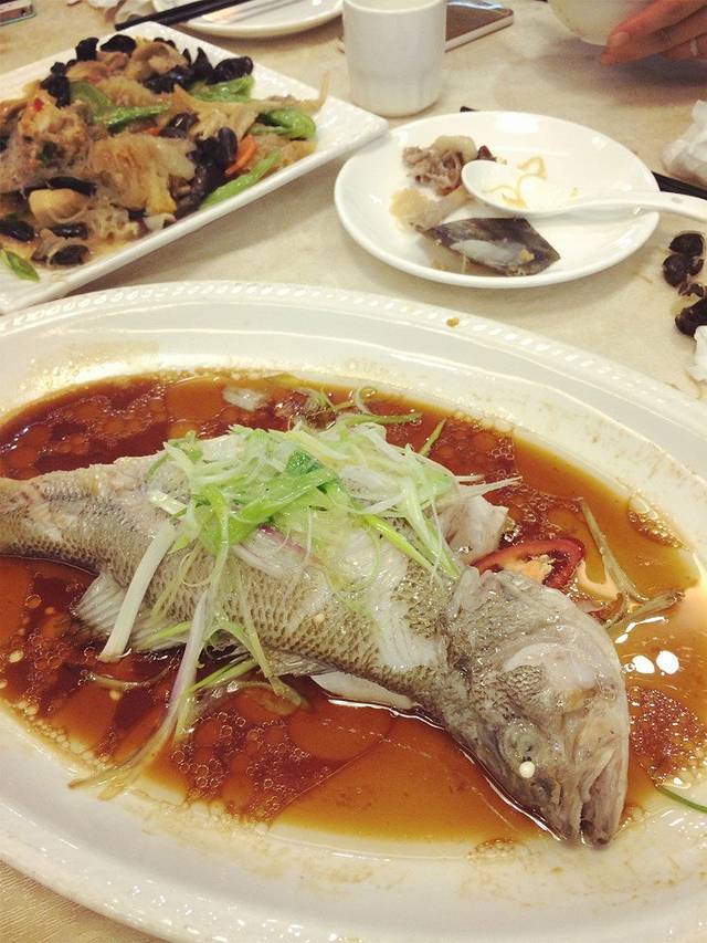 随意找了个出口叫太平,车子开到一个灯光比较亮的小商圈停好车,随意找了家酒楼,我已经记不清那家店的名字了,但是那里却让我收获了意外的美味。酒楼属于传统的广式风格,我们落座的时候只有2、3桌客人,点了广式烧鹅、带子、海鲜炒饭、生菜还有一条鲈鱼。烧鹅的味道很正是我比较喜欢的粤菜口味,皮烤的非常焦脆,海鲜炒饭也分量十足,最要命的是那条鲈鱼真的是太新鲜了,而且关键是火候恰当好处。我们宁波本身海鲜就多而且家庭因素对海鲜还是比较了解的,但是如此新鲜的鲈鱼我也是第一次吃到,蒸鱼蒸的火候也拿捏准确,鱼皮微裂。这顿海鲜餐虽然算不上大餐,但也一定程度弥补了我们在湛江的遗憾了。