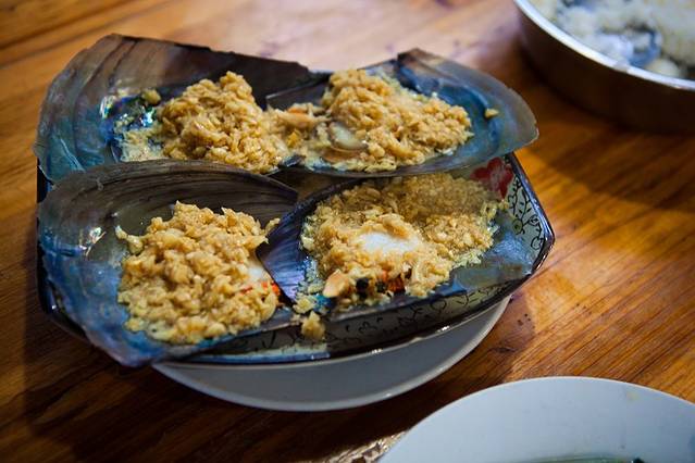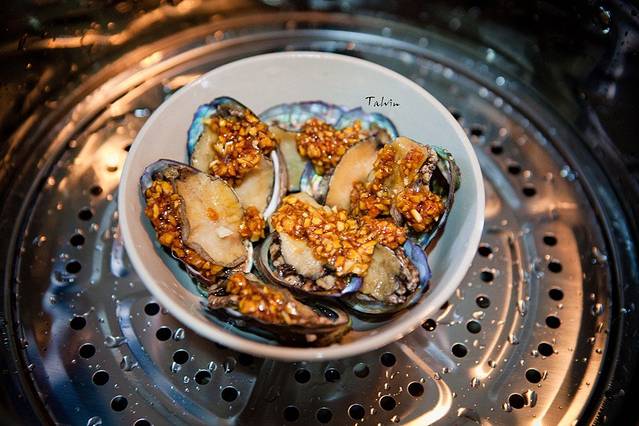 鲍鱼配上秘制调料(其实就是蒜末+酱油啦)