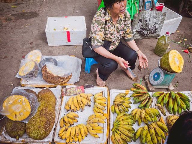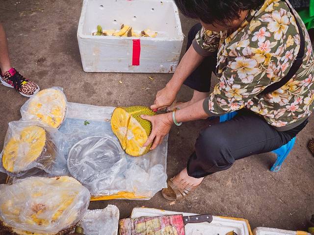 当地的菠萝蜜真的很好吃,我们买了两次,除去中间白色的东西和核其余都能食用,舅舅想背一个回去被我们制止了,但是最后在码头还是买了一个。